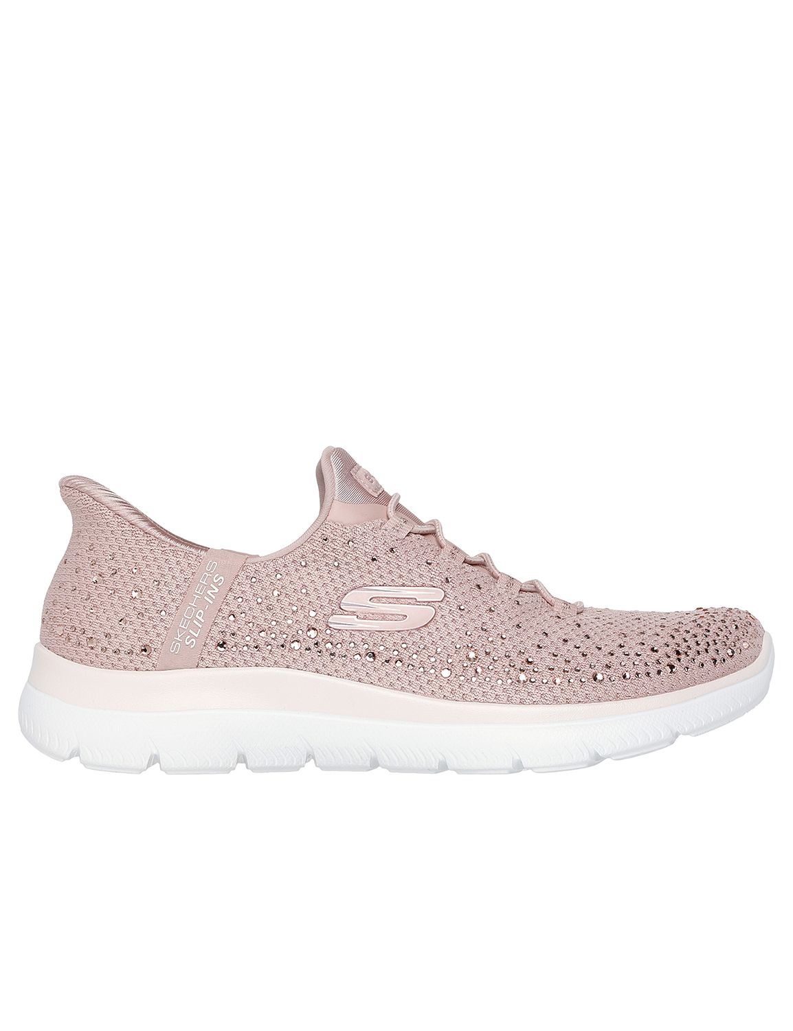 Available in Plus Size Add a little glam to your step with the effortlessly comfortable Skechers Slip-ins®: Summits - Brilliant Shine. Designed with our Heel Pillow®, this vegan style features a rhinestone embellished mesh upper with stretchlaces and a cushioned Skechers Air-Cooled Memory Foam® comfort insole. KEY FEATURES: Skechers Hands Free Slip-ins® for an easy fit Heel Pillow® holds your foot securely in place Skechers Air-Cooled Memory Foam® cushionedcomfort insole No Tie Fit™ - laces never come untied Crafted with 100% vegan materials DESIGN DETAILS: Rhinestone embellished mesh upper with stretchlaces Lightweight flexible shock-absorbing midsole Flexible traction outsole 1 1/4-inch heel Skechers® logo detail Item Number #414535 ". Plus Size Skechers Slip-ins®: Summits - Brilliant Shine, in Pale Pink, 6M, Women's, Lane Bryant