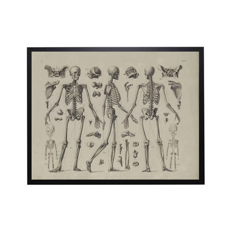 Create a haunting apothecary display with the Skeleton Body Halloween Framed Art Print. This skeleton diagram-like art will bring antique appeal into your home. Overall dimensions Width: 21 in. Depth: 1 in. Height: 17 in. Frame crafted of wood Black frame finish Features skeleton designs Mounted on board Hues of gray, beige, and black Weight: 3 lbs. Hangs from back-mounted hardware Care: Dust with a soft, dry cloth. This item is available at Kirklands.com only, not available in stores. Please note: this item cannot be shipped to APO/FPO addresses.