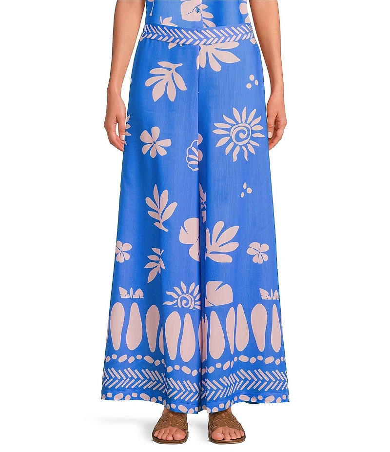 Skies Are Blue Leaf Print High Rise Wide Leg Coordinating Pants