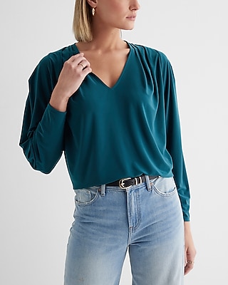Skimming V-Neck Long Sleeve Pleated Shoulder Top in Chattanooga, TN