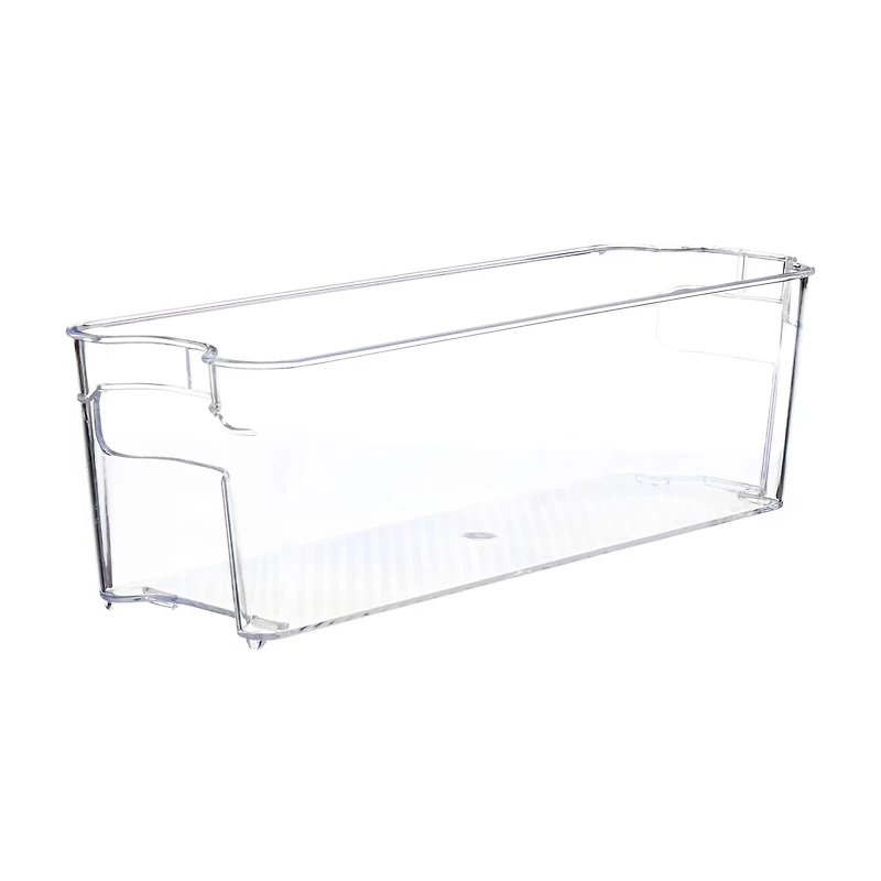 Easily keep pantry, cabinets, and refrigerator organized with this skinny plastic bin. The convenient slim design makes this a super space saver storage solution - can also be used to organize desks, bathrooms and more! The bin is made of clear, BPA-free plastic. Measures approximately 12.75 in. x 4.2 in. x 3.9 in.