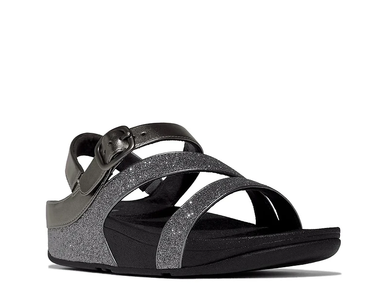 The Skinny II wedge sandal from FitFlop offers a refined silhouette with a z-strap design that wraps elegantly around your foot, making it a standout option for day-to-night wear. The glitter-dusted lower straps and soft metallic upper add a fashion-forward edge, while the adjustable buckle ensures a secure, personalized fit.