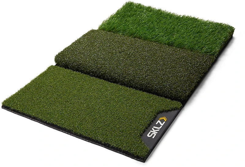 Work on your shots from 3 different lies with the SKLZ Pure Practice 25 in x 16 in Mat. The 1st cut rough helps you practice ball striking in deeper lies, and the mat is constructed to hold up through vigorous use.