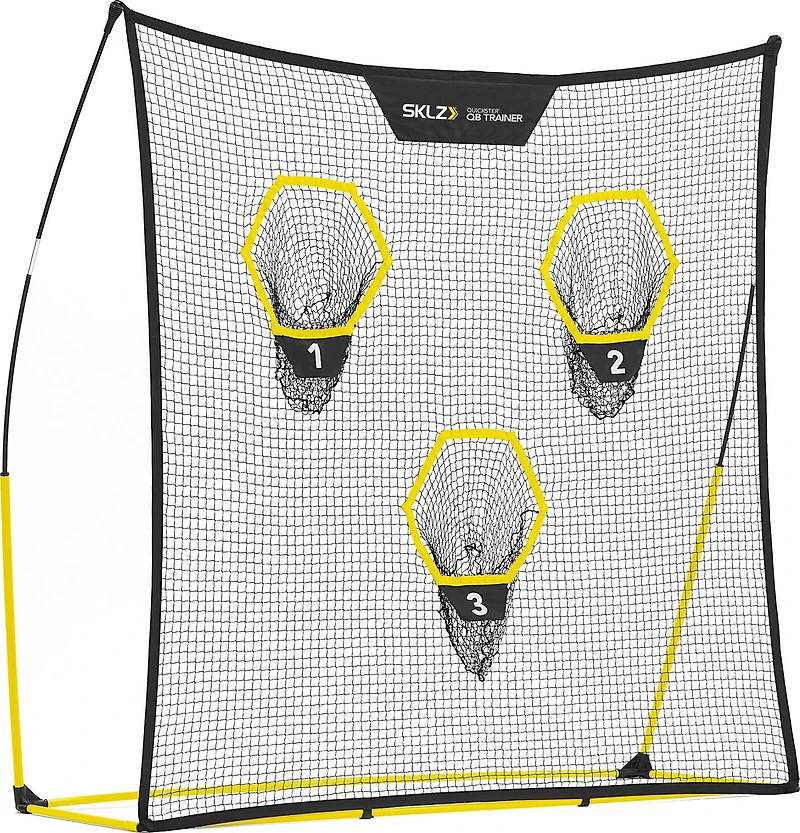 The SKLZ Quickster® Ultraportable QB Passing Trainer features 3 numbered passing targets designed to help assist in throwing accuracy and can be used at home or on the field. Tension-Tite™ frame technology helps keep the net in place, and the lightweight, portable design offers quick and easy setup.