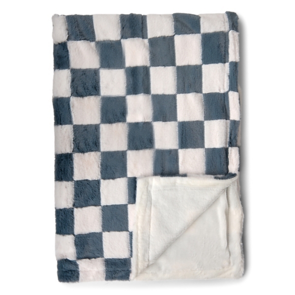 Slate & White Faux Fur Checkered Throw