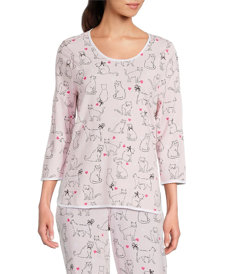 Sleep Sense Kitty Heart Print Scoop Neck 3/4 Sleeve Knit Coordinating Sleep Top in Chattanooga, TN