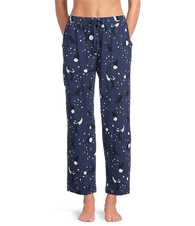 Sleep Sense Moonlit Cats Print Coordinating Knit Sleep Pants
