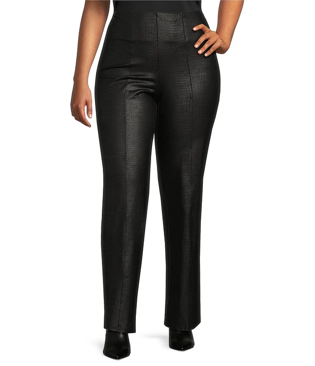 Slim Factor by Investments Plus Ponte Knit No Waist Slim Straight Python Foil Coated Pants