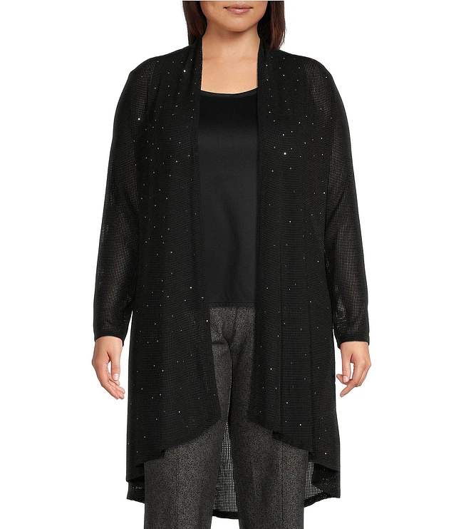 Slim Factor by Investments Plus Size Open-Front Long Sleeve Mesh Cardigan