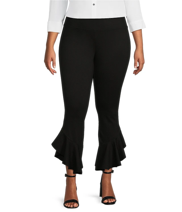 Slim Factor by Investments Plus Size Ponte Knit Wide Waistband Flared Ruffle Pants