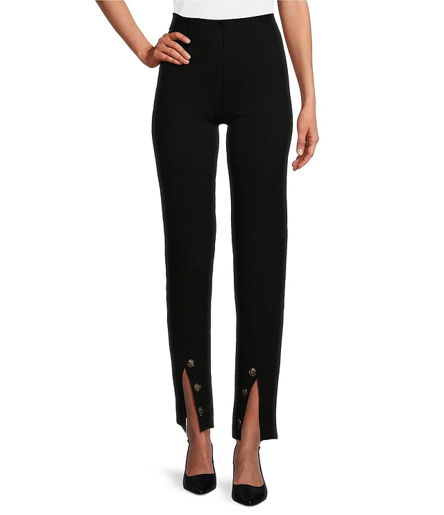 Slim Factor by Investments Ponte Knit No Waist Slim Leg Gold Trim Pants