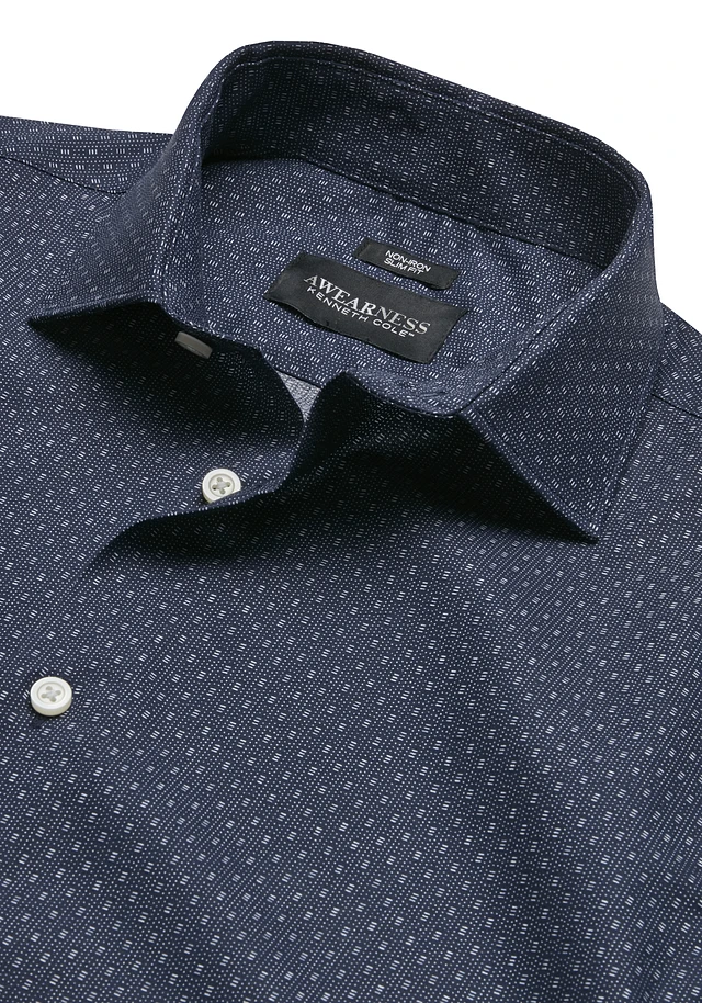 Perry Ellis Slim Fit Spread Collar Geometric Print Dress Shirt