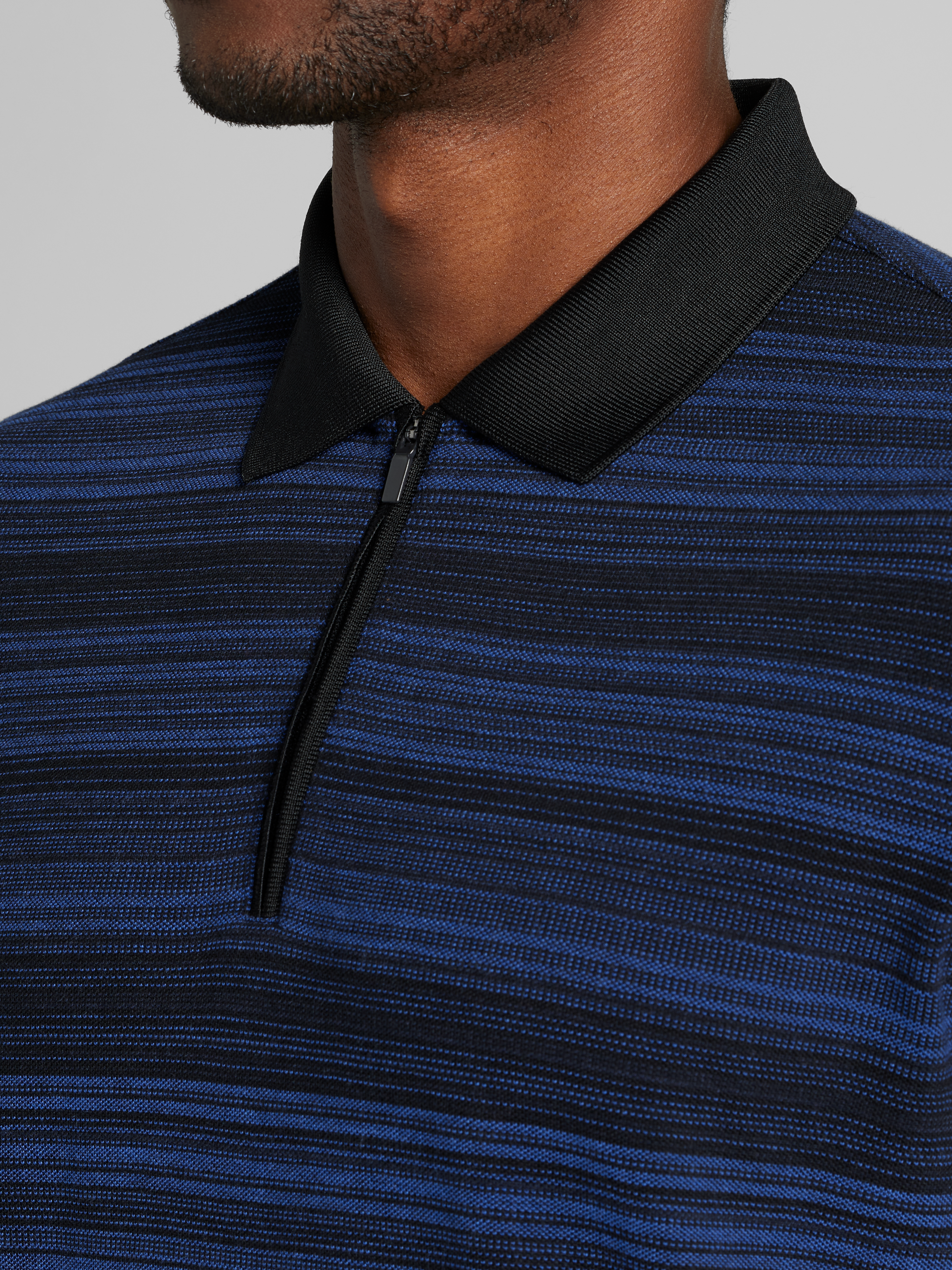 Crafted from a comfortable cotton and polyester blend, this short-sleeve polo shirt offers a modern Slim Fit that looks sharp without sacrificing ease of movement. The unique space dye stripe pattern adds a touch of visual interest, while the contemporary zippered placket provides a stylish alternative to traditional buttons. Perfect for dressing up your everyday look or adding a refined touch to weekend wear, this polo seamlessly blends comfort and sophisticated design.