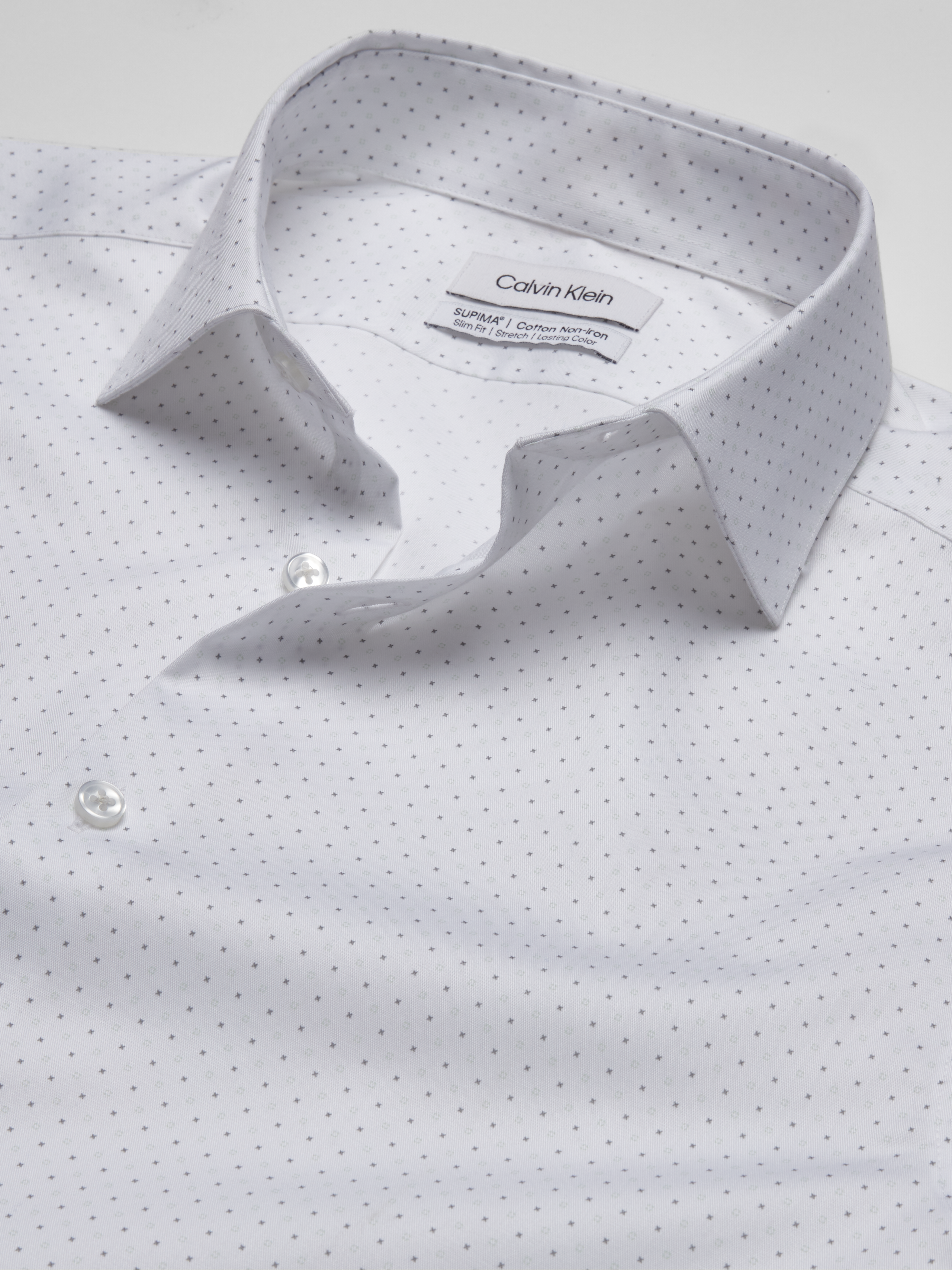 This dress shirt from Calvin Klein combines modern tailoring with exceptional comfort. Made from premium Supima cotton with a touch of stretch, it offers a luxuriously soft feel while ensuring flexibility and shape retention throughout the day. The Slim Fit creates a sharp, streamlined silhouette, perfect for pairing with a suit or wearing on its own for a refined, contemporary look.
