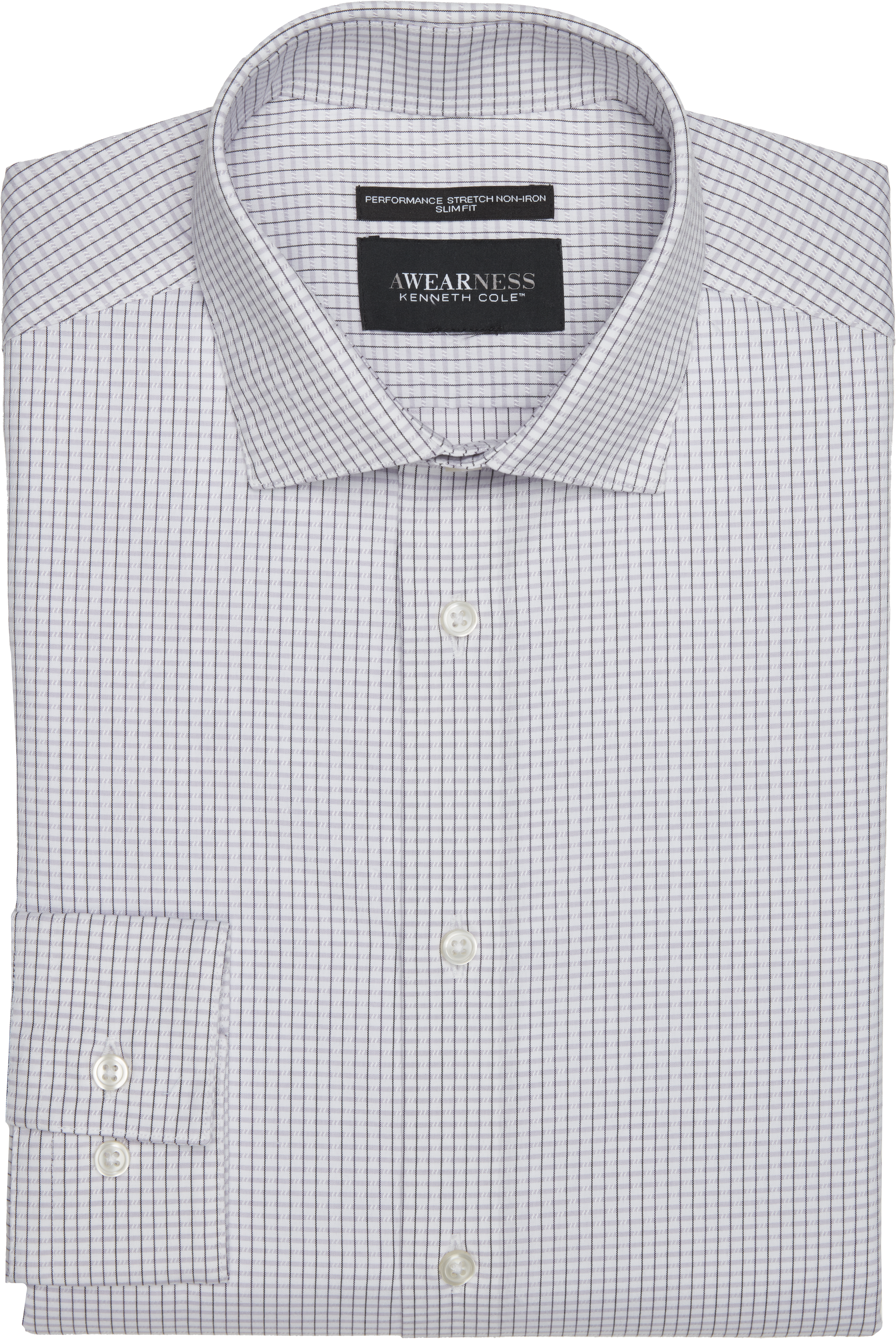 Beneath the trim exterior of this Awearness Kenneth Cole dress shirt lies a secret weapon: ultra performance stretch fabric that flexes with your every move. Topped off with a non-iron finish, you can power through a presentation, brainstorm like a whirlwind, then catch the last train, all while polished and confident.