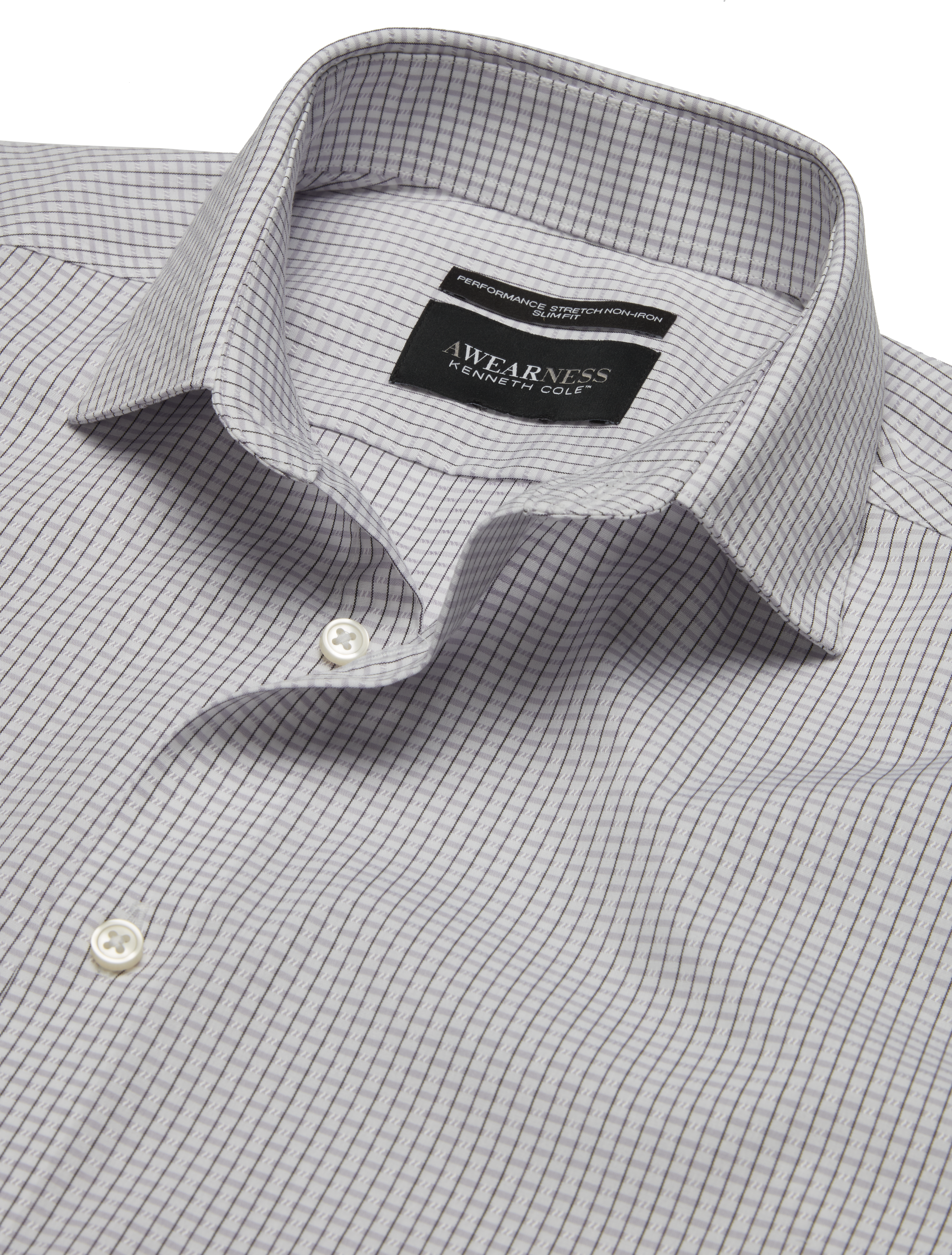 Beneath the trim exterior of this Awearness Kenneth Cole dress shirt lies a secret weapon: ultra performance stretch fabric that flexes with your every move. Topped off with a non-iron finish, you can power through a presentation, brainstorm like a whirlwind, then catch the last train, all while polished and confident.