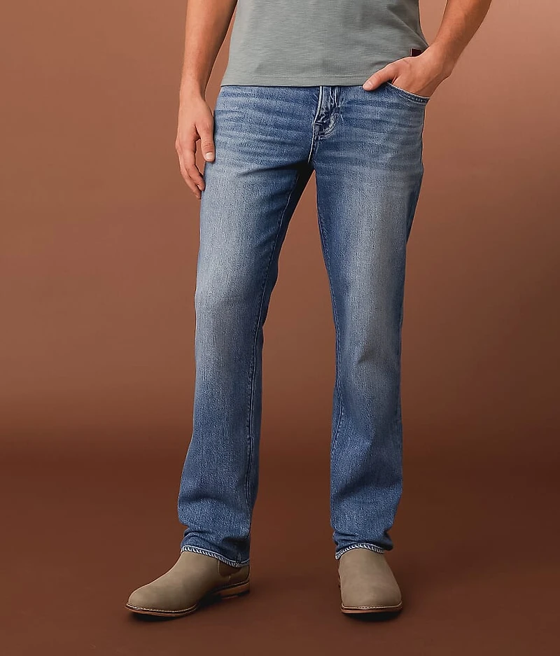 Slim fit jean Performance stretch fabric for a higher level of flexibility Refined luxe stretch denim for a soft feel and ultimate comfort Mid-rise, 16" bottom opening Zip fly