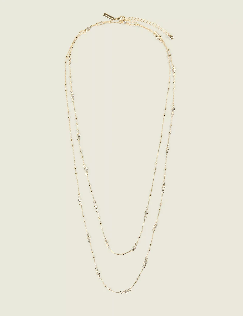 Available in Plus Size A multi-layered goldtone necklace with tiny crystals - a sparkling accent for any outfit. FIT: Our necklaces are thoughtfully designed with extenders to fit any length, every body. Designed to be 3" longer than industry standard with an extender that lets you add up to 3 inches. MATERIALS: NICKEL-FREE: Our jewelry is nickel-free for sensitive skin Spot Clean 70% Brass/10% Iron/20% Zircon Item Number #415306 Imported Plus Size Jewelry ". Plus Size Small Crystal Station Necklace, in Gold, Women's, Lane Bryant