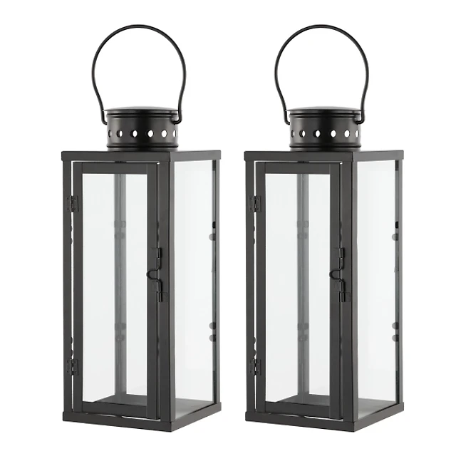Small Lorio Black Outdoor Lanterns, Set of 2