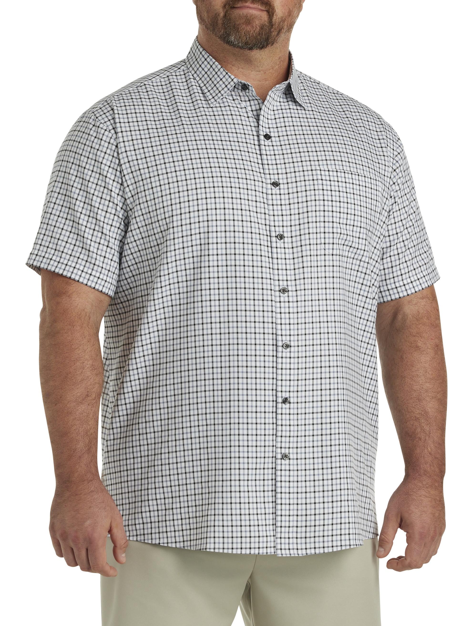 Talk about casual comfort and style, you'll achieve the ultimate laid-back look wearing this soft microfiber sport shirt. In an iconic plaid pattern with a fresh-for-the-season color palette, it's a foolproof look that will keep you stylishly comfortable all day long. Pair it with jeans, khakis or shorts...it's that versatile! Even better, it's made right here at DXL with a roomy fit and proper proportions that are designed to to fit and flatter Big + Tall men.