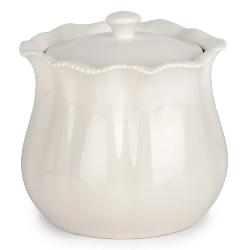 Our Small White Wavy Beaded Canister will add a kind of whimsical elegance to your kitchen storage! Characterized by the curved shape and smooth, glossy finish, this unique canister will look charming on your countertop. Canister measures 6.6H x 6.4 in. in diameter Holds up to 63 oz. Crafted of 100% stoneware Shiny white finish Round, wavy shape Beaded detailing Food safe Care: Hand wash only. Contact your local Kirkland's store for availability. Quantities and selection may vary by location.