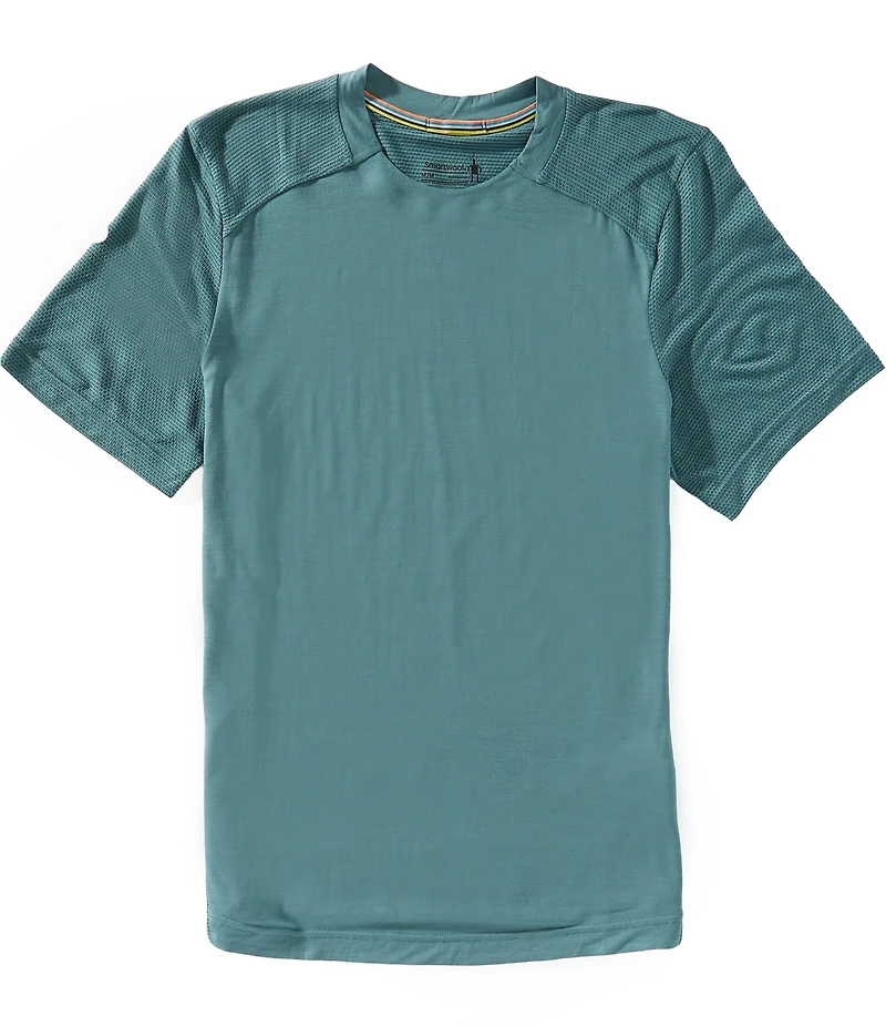 From SmartWool, this t-shirt features: Solid tone Crew neckline Short sleeves Offset shoulder and side seams designed to help increase comfort and minimize chafing Targeted mesh zones designed to help increase breathability  Moisture management Temperature regulation Odor resistant Merino wool/TENCEL™ lyocell/recycled polyester Machine wash/tumble dry Imported.