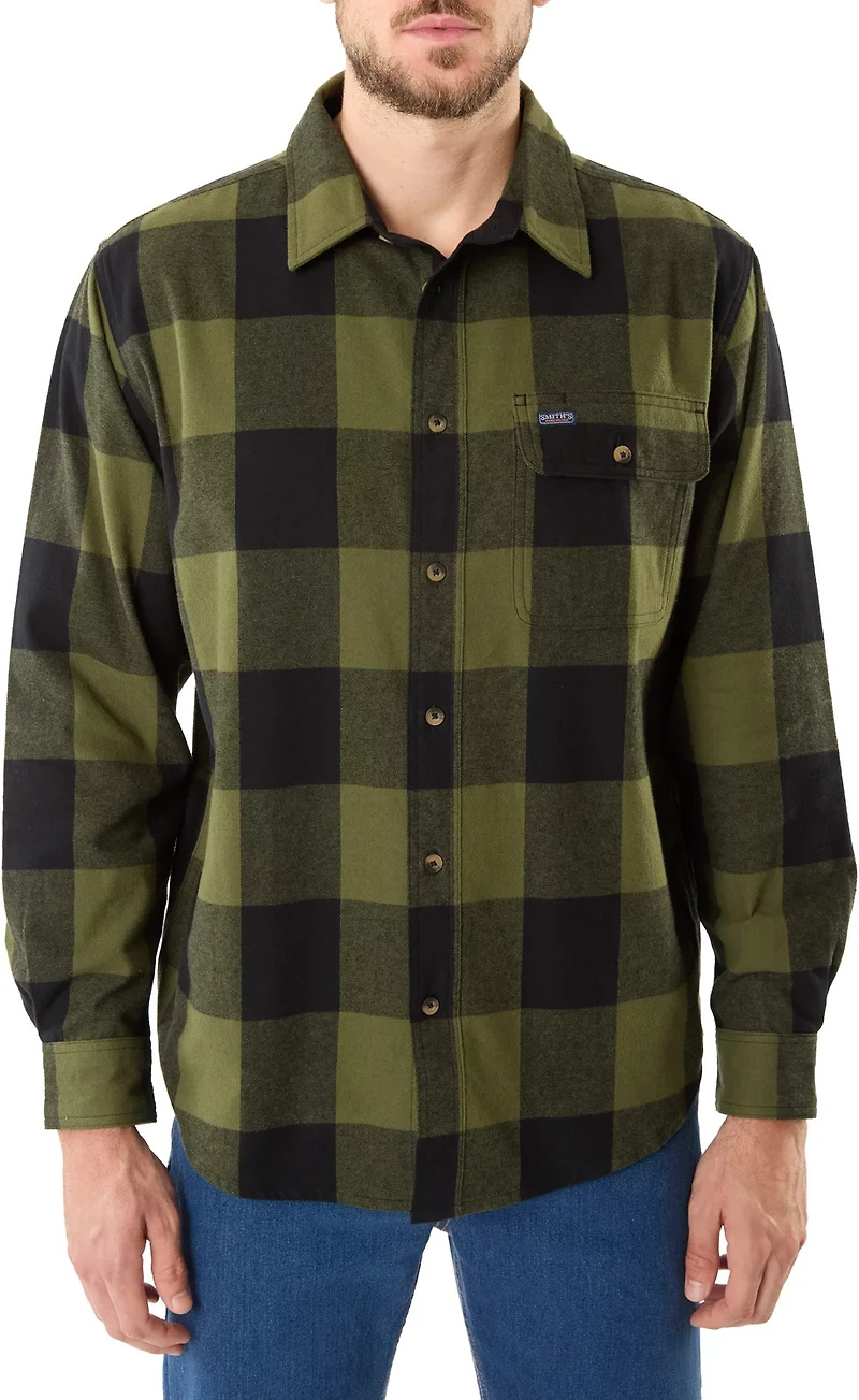 Layer up and stay warm outside in the Smith's Workwear Men's Big & Tall Pocket Flannel Shirt. The cotton and polyester fabric delivers comfort and coziness, and the flap pocket with a pen slot carries your extra gear. The double stitching on the stress seams help the flannel withstand wear and tear, and the plaid design highlights an outdoorsy appearance,
