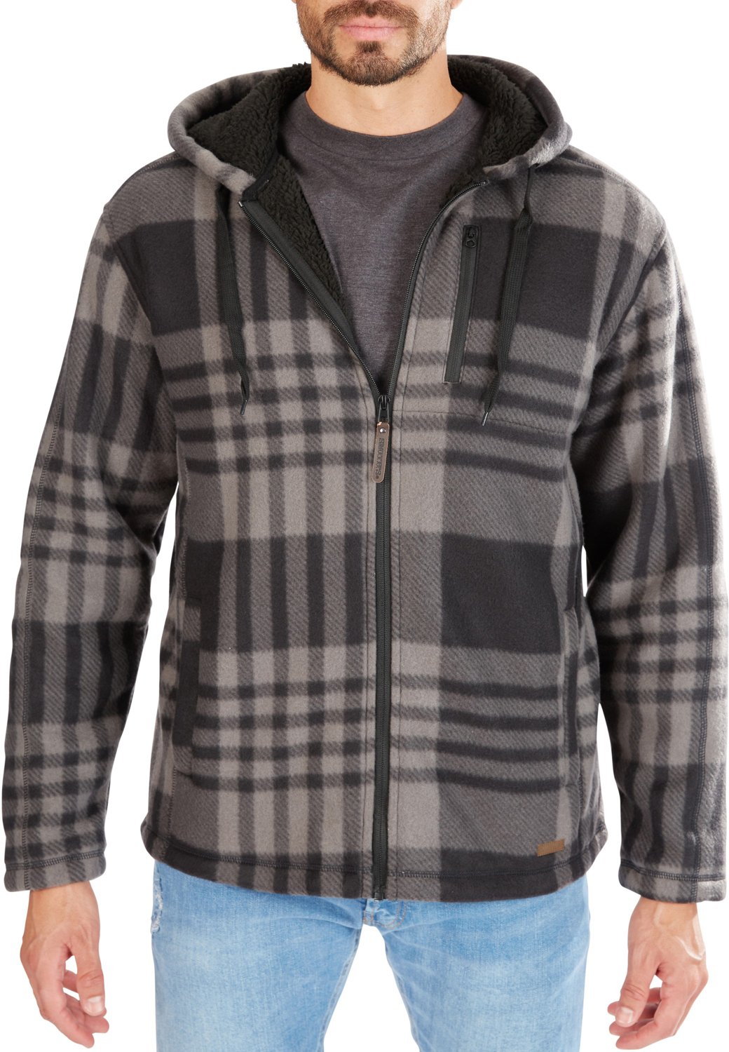 Smith's Workwear Men's Butter-Sherpa Lined Plaid Polar Fleece Full Zip Hooded Jacket