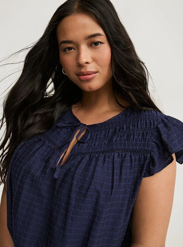 Flutter-Sleeve Woven Yoke Top
