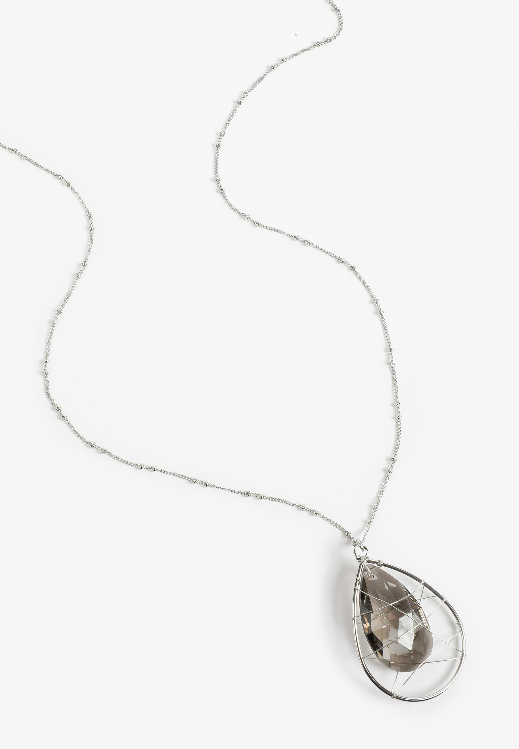 Smoky Gray Faux Crystal Caged Pendant Necklace in Chattanooga, TN