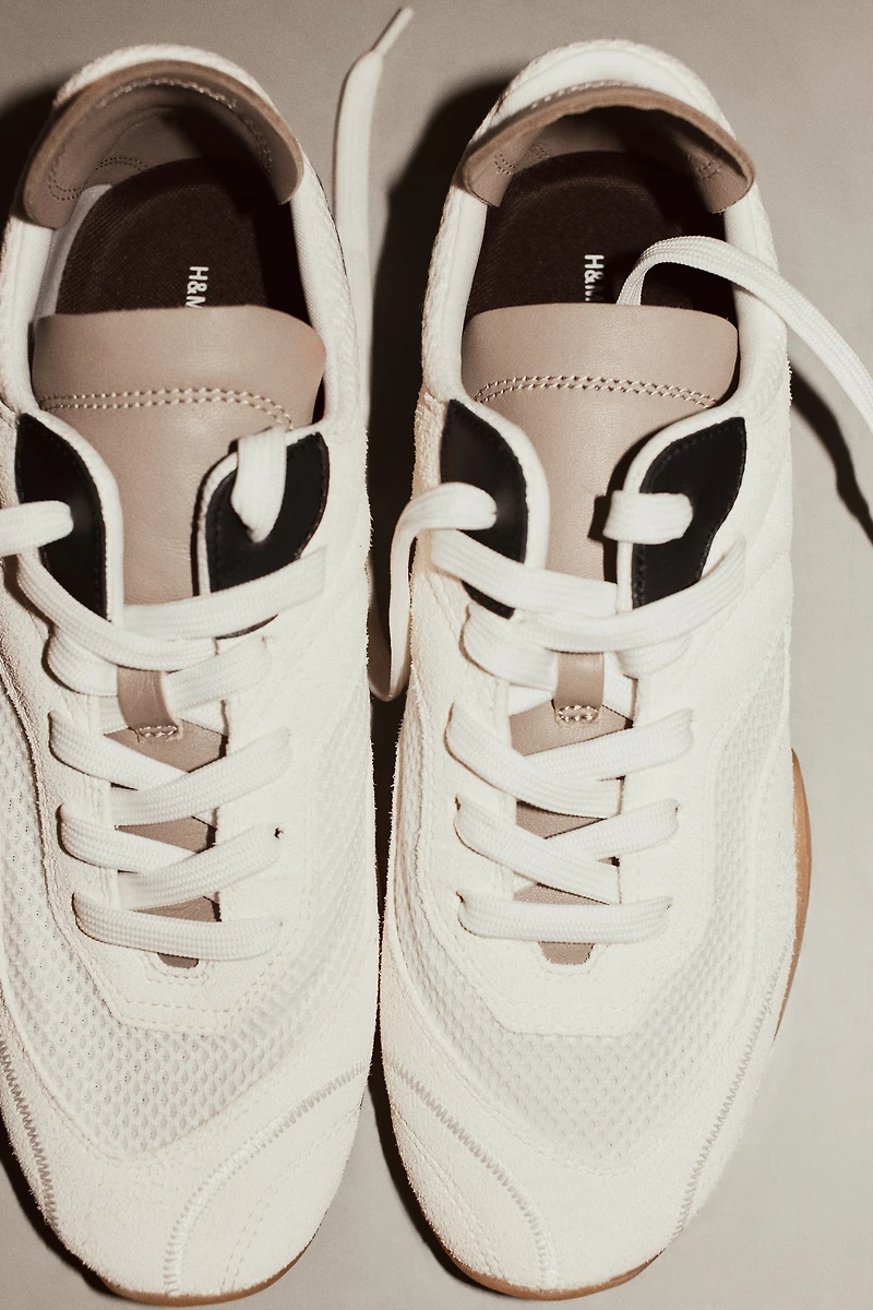 Refined color-block sneakers made from suede, mesh, and leather. Rounded toes, tonal lacing, and extended heel tabs. Soft jersey lining, lightly padded breathable mesh insoles, and patterned soles.