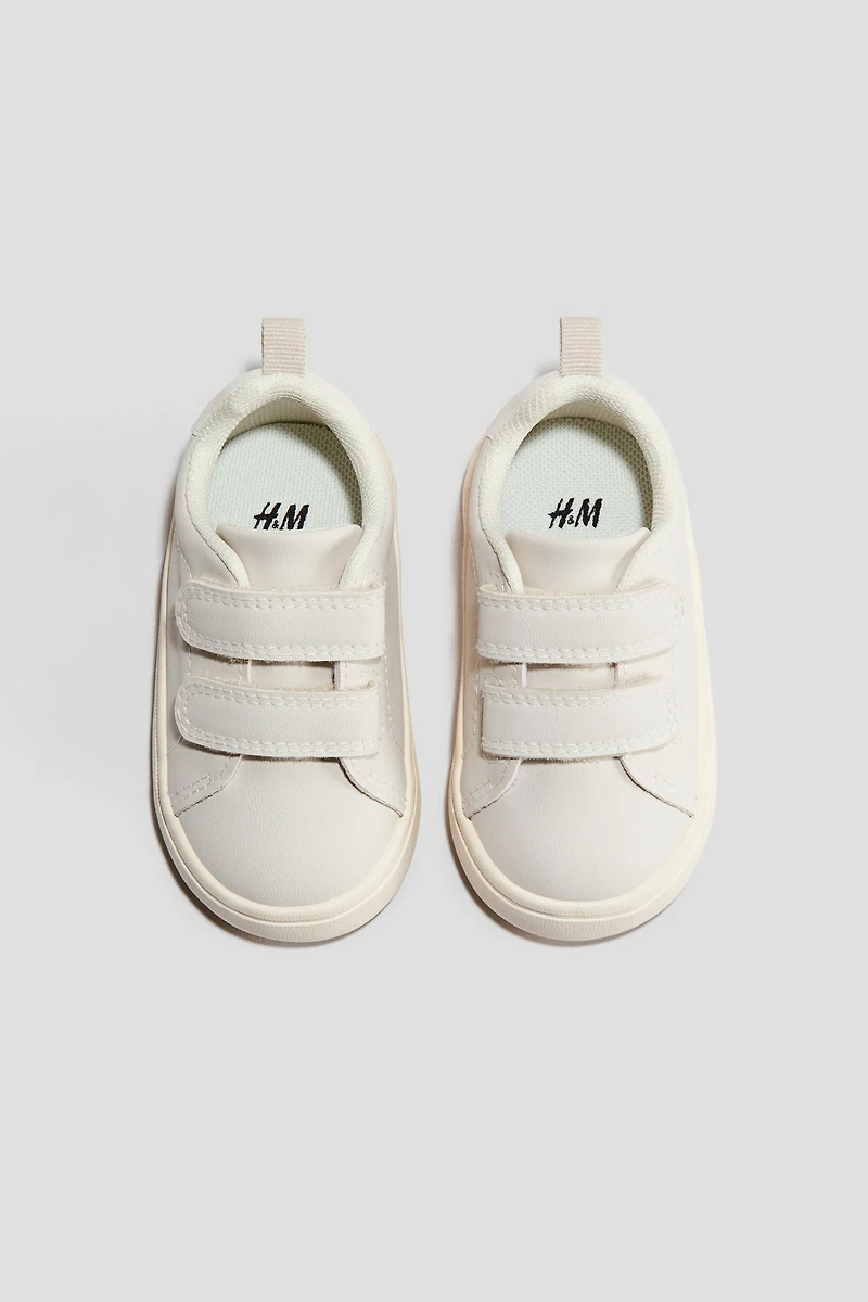 Sneakers with hook-loop tabs at front and loop at back. Lining in mesh, insoles in mesh, and patterned vulcanized soles.