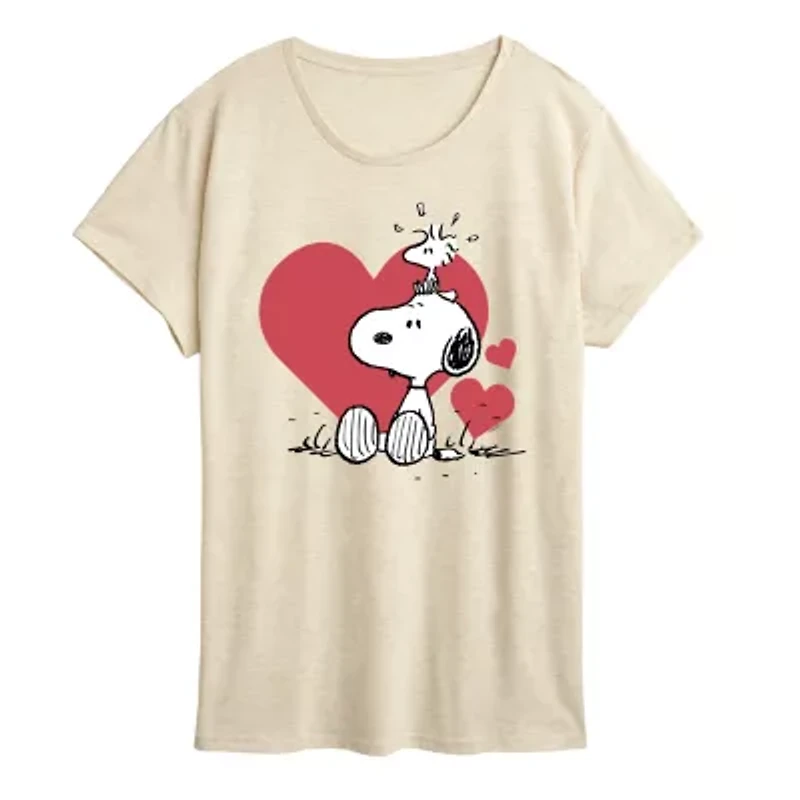 Snoopy And Woodstock Heart Womens Crew Neck Short Sleeve Classic Fit Peanuts Graphic T-Shirt