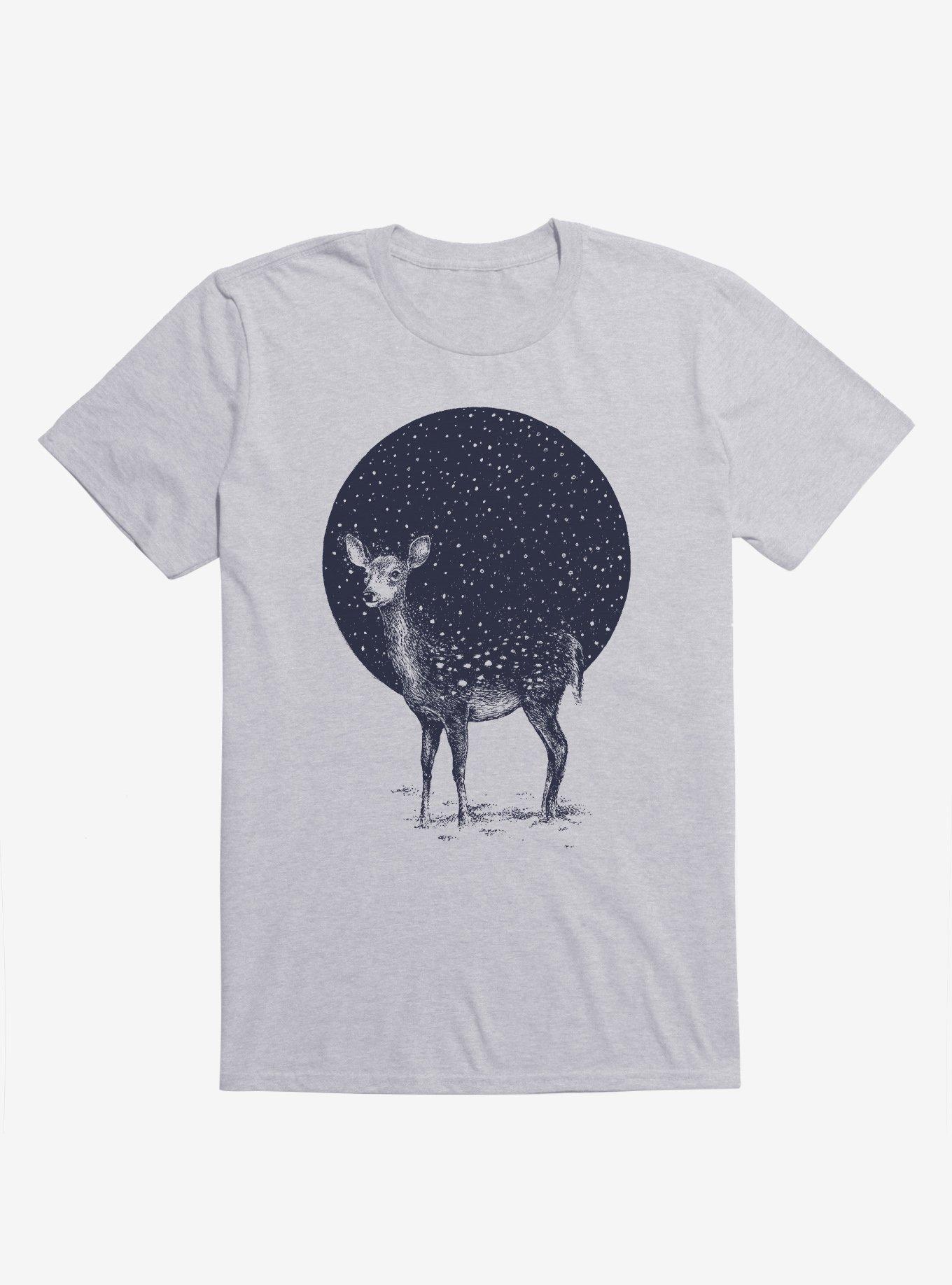 Near and deer. This lightweight sport grey tee features a light snow falling upon the coat of a majestic fawn. Officially licensed art from Daniel Teixeira.
