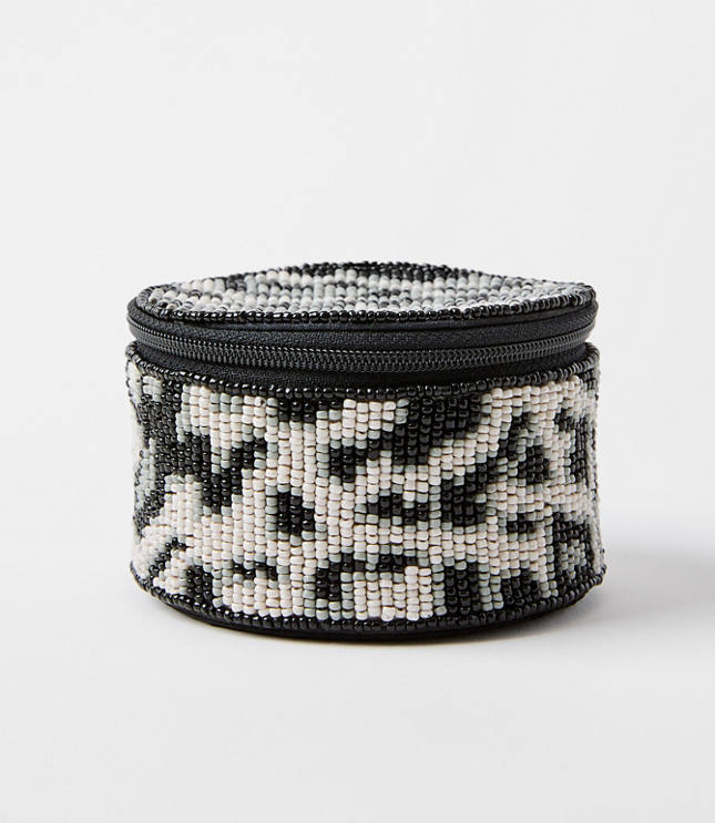 Beaded in a wildly cute snow leopard motif, store your treasures in a jewelry box as glam the sparkles you'll keep inside. Zip closure 3 1/2"x 1 /"., Imported: Loft Snow Leopard Beaded Jewelry Box Grey Women's by Loft Size Regular - One Size Grey Multi Women's Other, Fashion Accessories