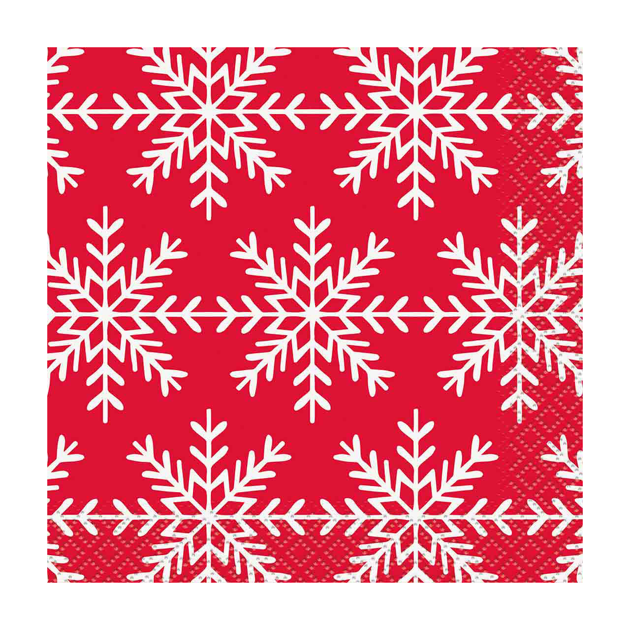 - Festive red napkins with white snowflake design