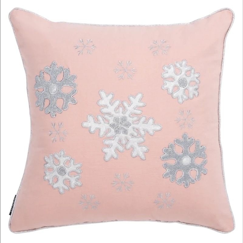 Transform your living space with the Snowflakes on Pink Christmas Pillow. The silver snowflakes will add a touch of whimsy and winter magic to your home this Christmas. Pillow measures 18L x 18H in. Crafted of 100% polyester Embroidered snowflake designs Hues of pink and silver Solid reverse Care: Spot clean only. This item is available at Kirklands.com only, not available in stores. Please note: this item cannot be shipped to APO/FPO addresses.