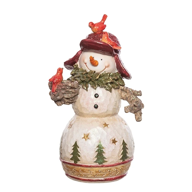 Snowman Figurine with Cardinals Figurine