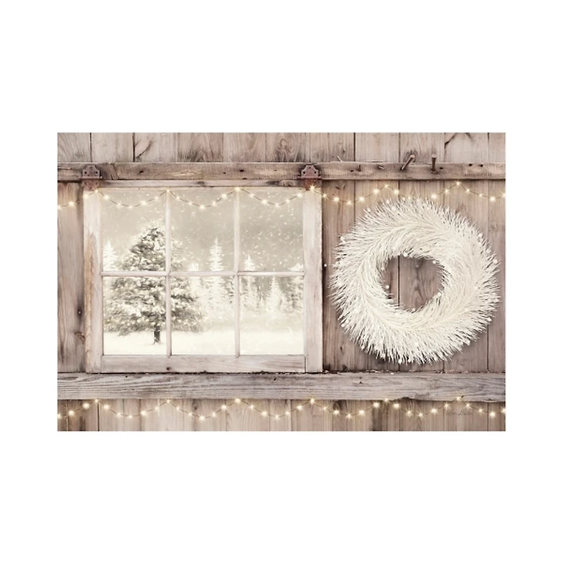 Add a touch of rustic charm to your Christmas this year with our Snow Barn View Canvas Art Print! This cozy barn, looking out at snowy trees, is perfect for a farmhouse style home! Art measures 48L x 1.25W x 32H in. Distinctively printed with Giclee technology on thick, archival-grade polyester canvas Canvas stretched over solid wood Wrapped edges complete the look Features a barn windowpane with a wreath and string lights looking out to snowy trees as subject Hues of brown, white, and gray Weight: 11.88 lbs. Hangs from back-mounted hardware Care: Dust with a soft, dry cloth. This item is available at Kirklands.com only, not available in stores. Please note: this item cannot be shipped to APO/FPO addresses.
