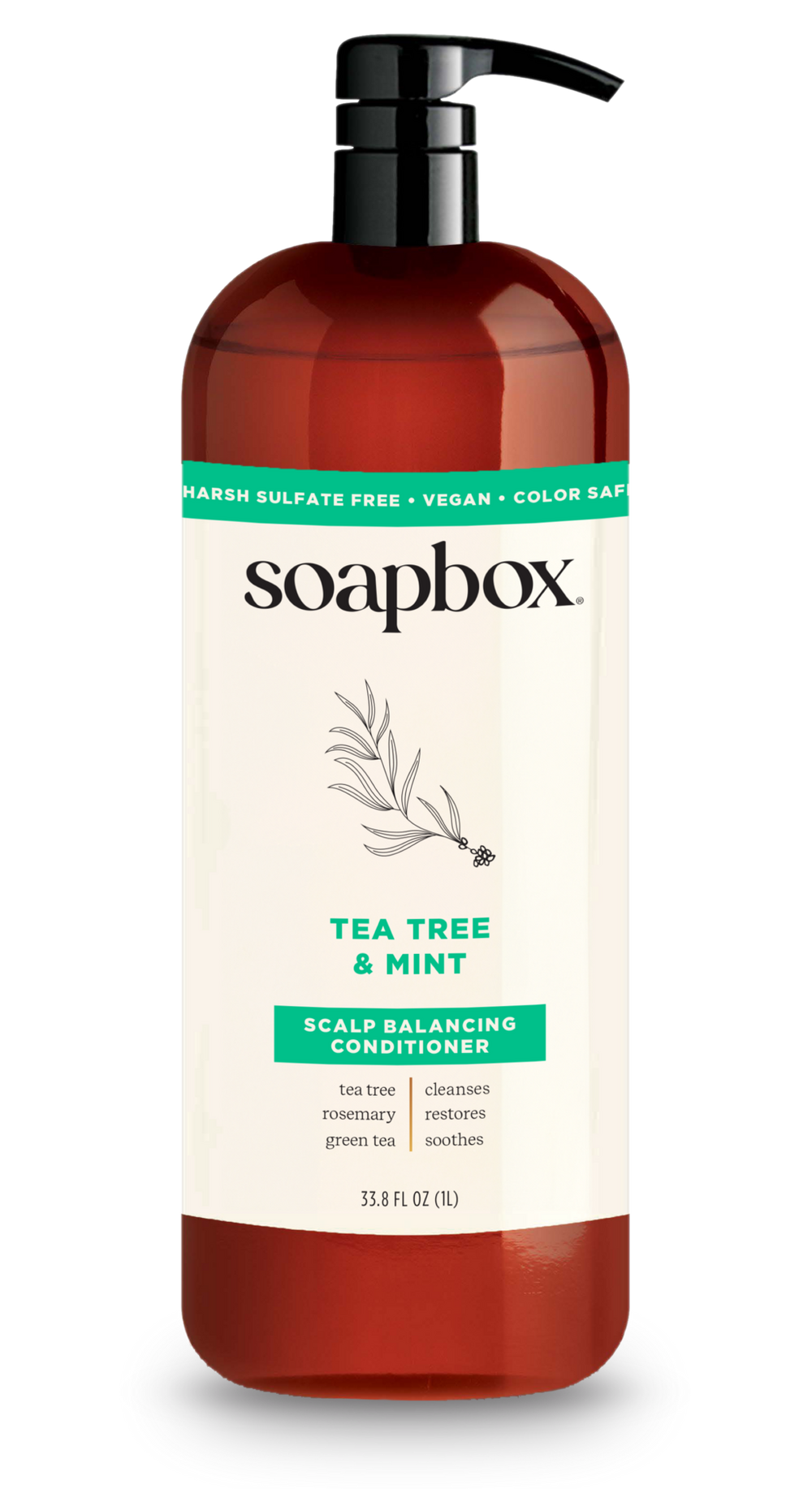 Tea Tree & Mint Scalp Balancing Conditio. Features: LIGHTWEIGHT HYDRATION This conditioner adds moisture to your hair without any added weight for easy, breezy, rebalanced scalp and hair days.. 5X VITAMIN COMPLEX of vitamin B9 to help promote visible shine, Vitamin B5 to moisturize hair, Vitamin C to help nourish scalp, Vitamin B7 to promote fuller-looking hair, and Vitamin E to strengthen strands for healthier hair made easy.. TEA TREE OIL: Helps to rebalance hair and scalp.. ROSEMARY: Restores and refreshes for soothed scalp and hair.. GREEN TEA: Calms and moisturizes strands by hydrating the cuticle.. MINT: Offers a cooling sensation that helps stimulate hair.. MADE IN THE USA, Cruelty-Free, Vegan and Gluten Free. Free from harsh sulfates and chemicals, parabens and phthalates.. MAKE A DIFFERENCE your purchase of this Soapbox product also donates a bar of soap to someone in need either locally or abroad, supporting our mission to make hygiene essentials accessible to everyone. Track your donation with the Hope Code on the back of your product.. : :