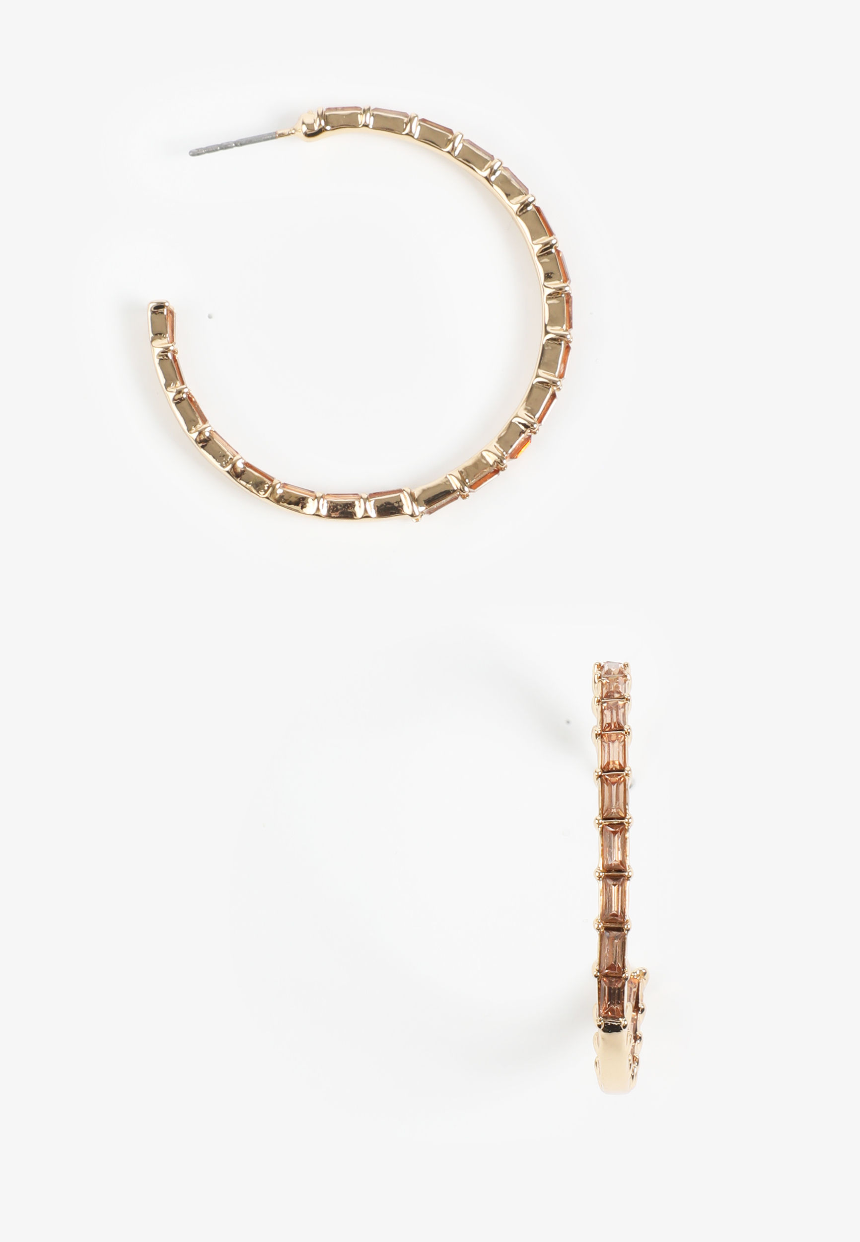 Soft Brown Baguette Rhinestone Hoop Earrings