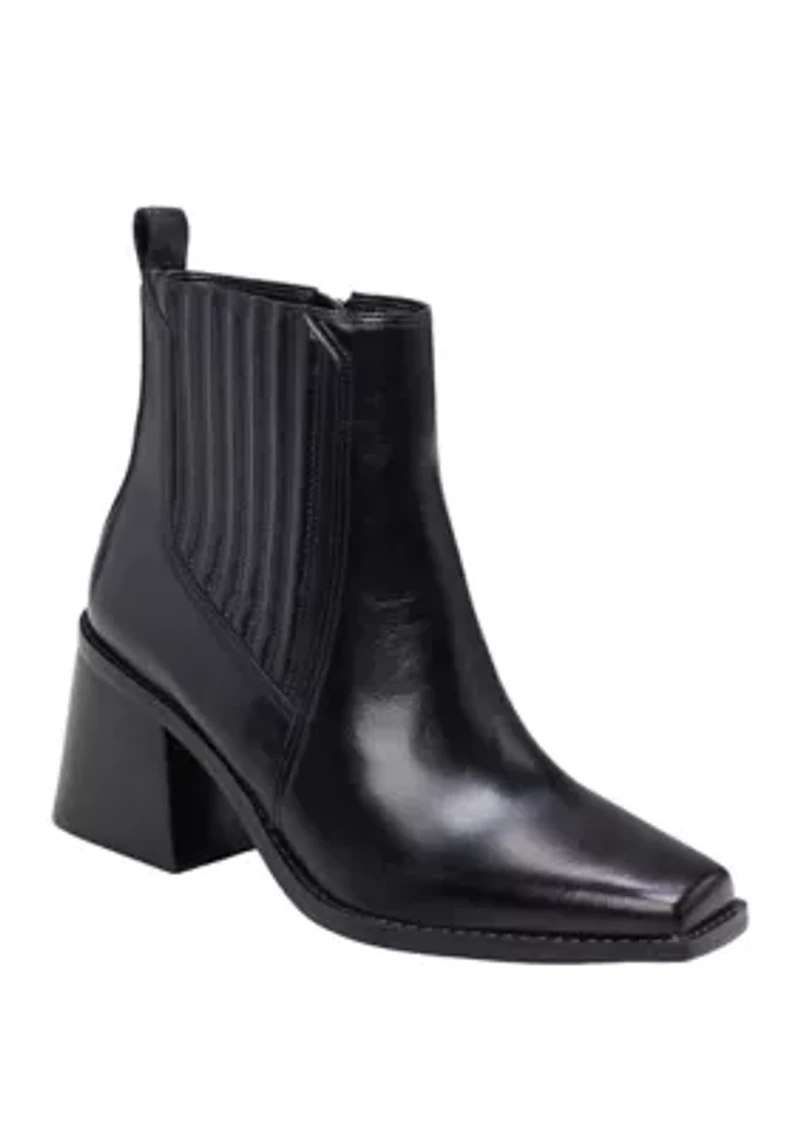 Lofted by a chunky block heel, these square-toe booties from Vince Camuto take you stylishly from work to weekend. Invisible zip closure Comfort technology Imported Product Specifications 2.75" heel Medium width Material Leather