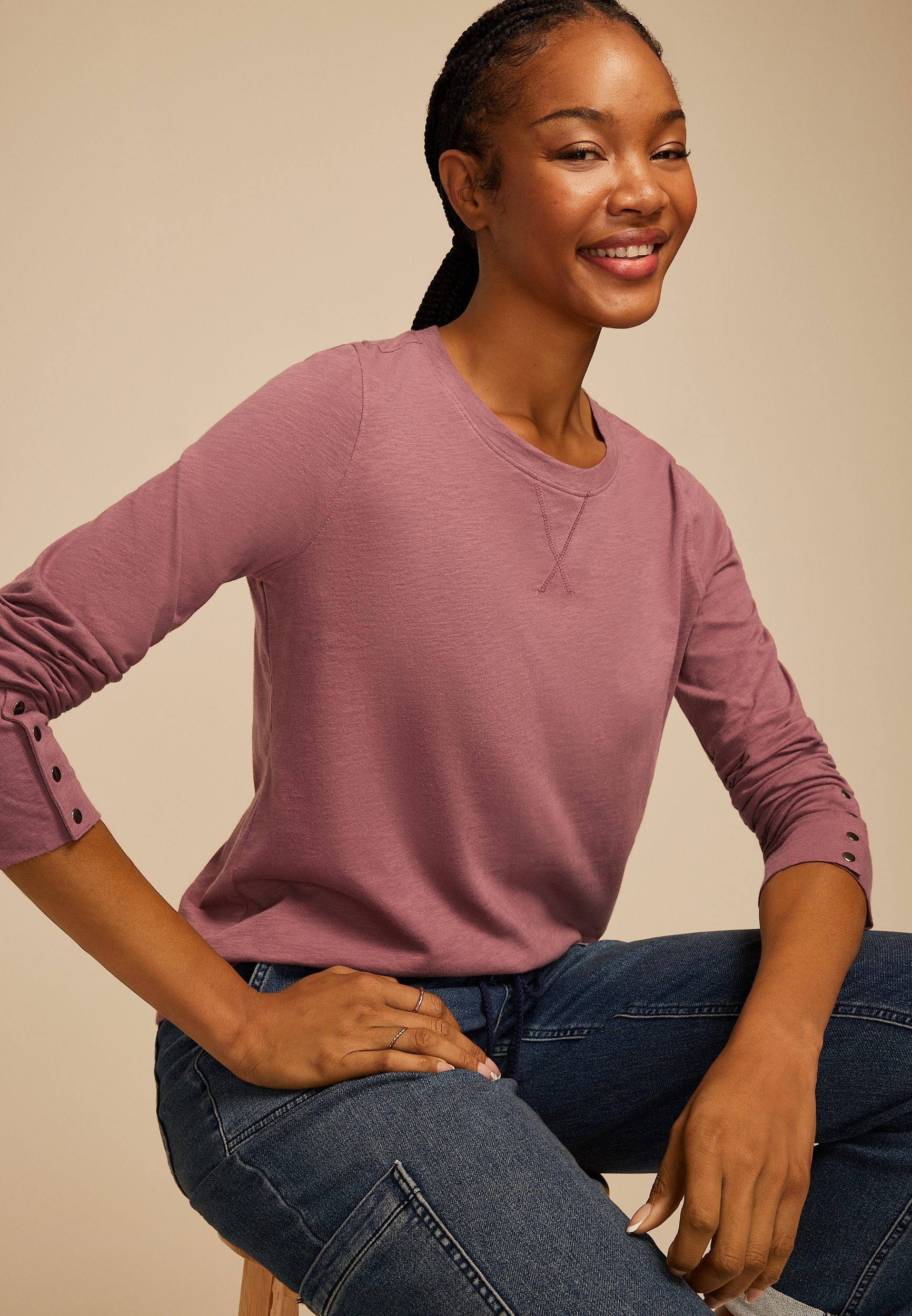 Solid Long Sleeve Snap Button Cuff Top in Chattanooga, TN