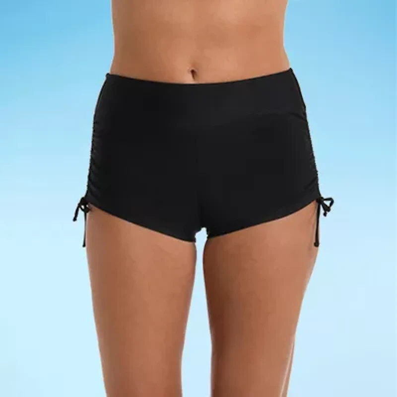 Get full coverage in the water wearing this pair of women's swim shorts from Sonnet Shores. They are made from a smooth, stretch woven fabric with a high-waist, and side tie ruching details.