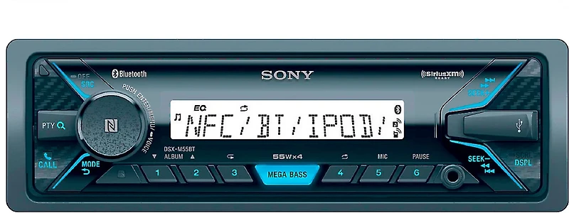 Take to the sea listening to your favorite music with the Sony DSX-M55BT Marine 55W Media Receiver. Choose from a selection of 12 AM and 18 FM presets to help you find your favorite stations, and use the 5 EQ sliders and MEGA bass technology to let you fine tune the audio. USB and AUX ports along with Bluetooth® technology enable connectivity to your personal devices, and the high-contrast LCD display allows for easy viewing in low-light conditions.