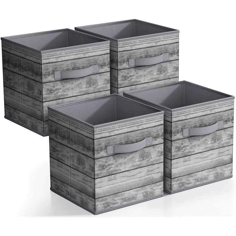 Sorbus 11" Gray Wood Pattern Foldable Storage Cubes, 4ct.