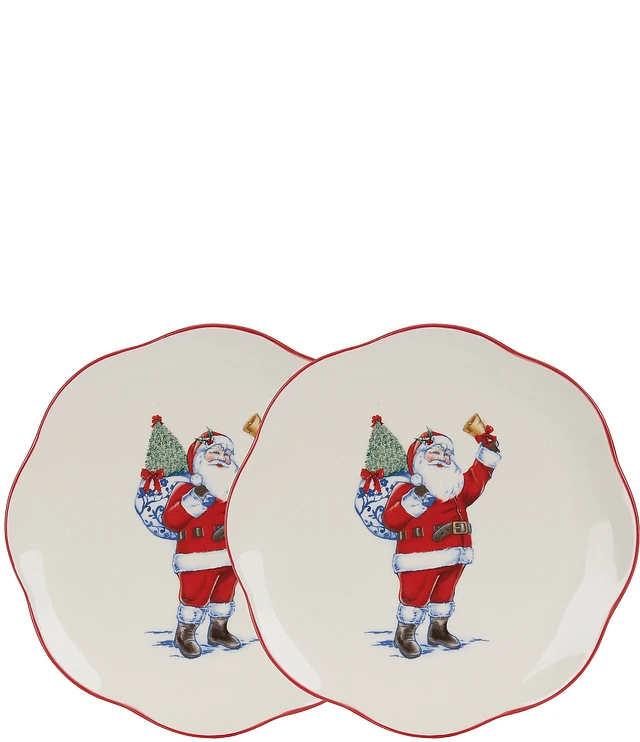 Southern Living Chinoiserie Christmas Santa Accent Plates, Set of 2
