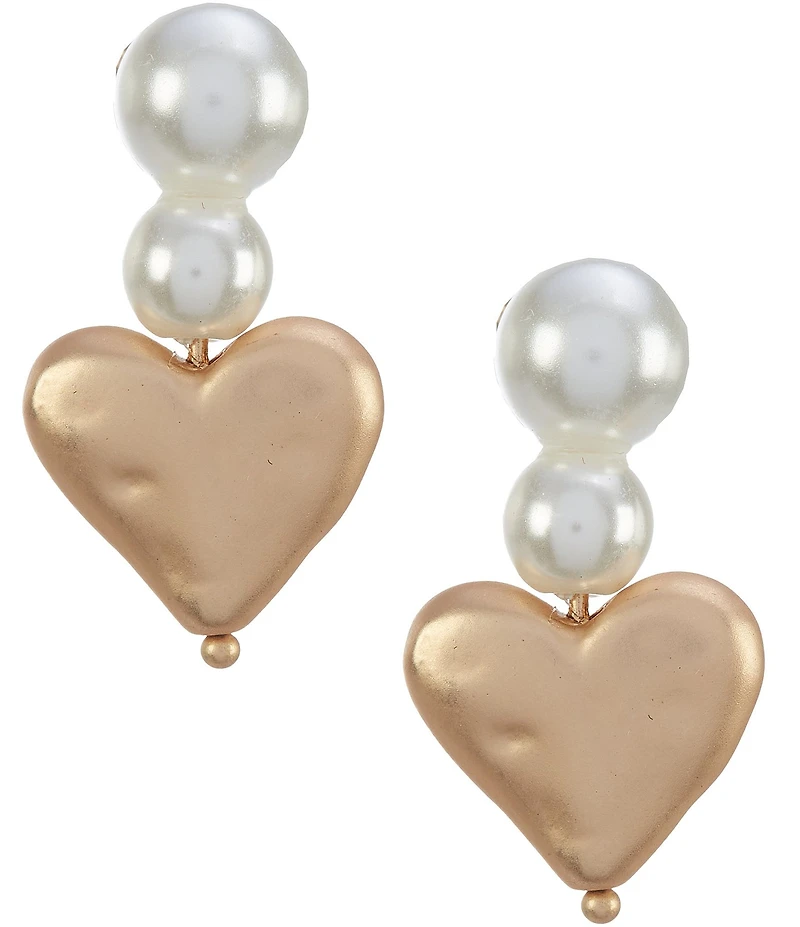 Southern Living Double Pearl Metal Heart Charm Drop Earrings