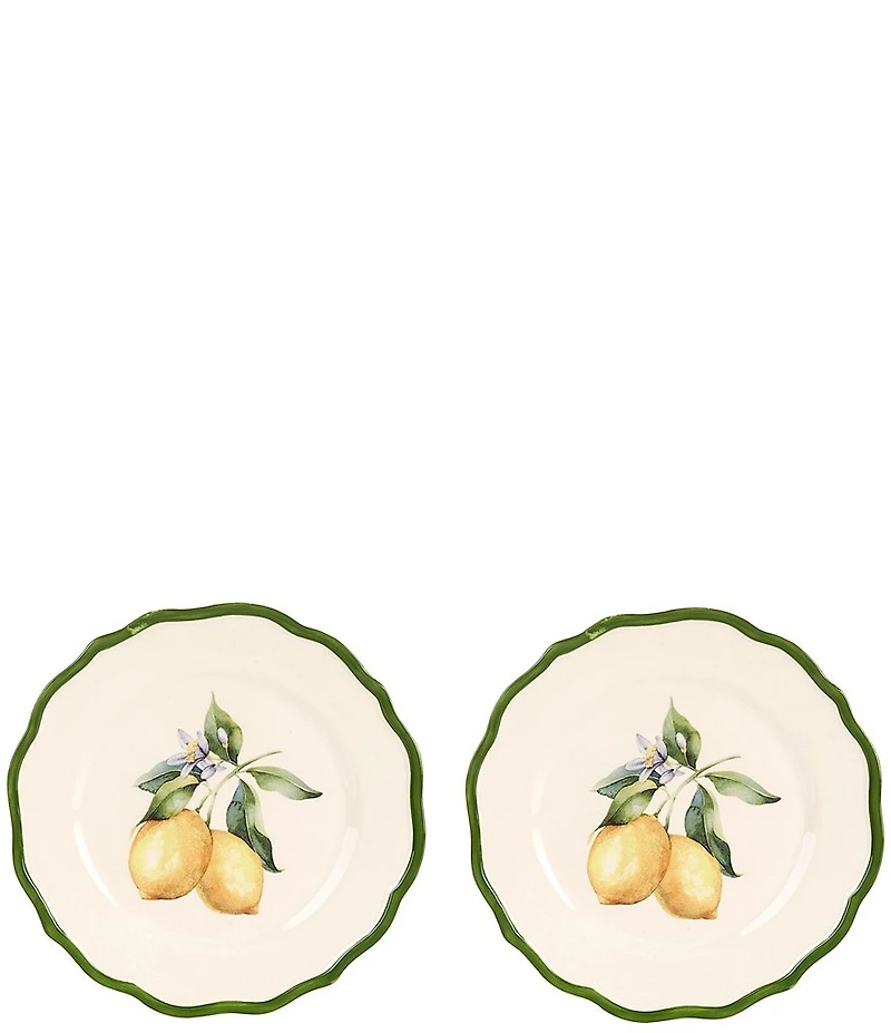 From Southern Living, this accent plate set features: Set of 2 plates Earthenware Lemon digital print in center of plate Scalloped edge Perfect for your table setting Approx. 8.6" dia. Dishwasher and microwave safe Imported. Southern Living is a trademark of TI Lifestyle Group, LLC, a subsidiary of Meredith Operations Corporation and is used under license.