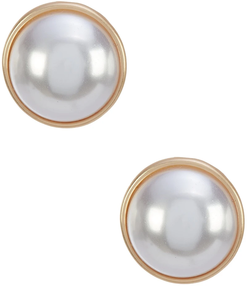 Southern Living Pearl Cab Round Metal Clip Earrings